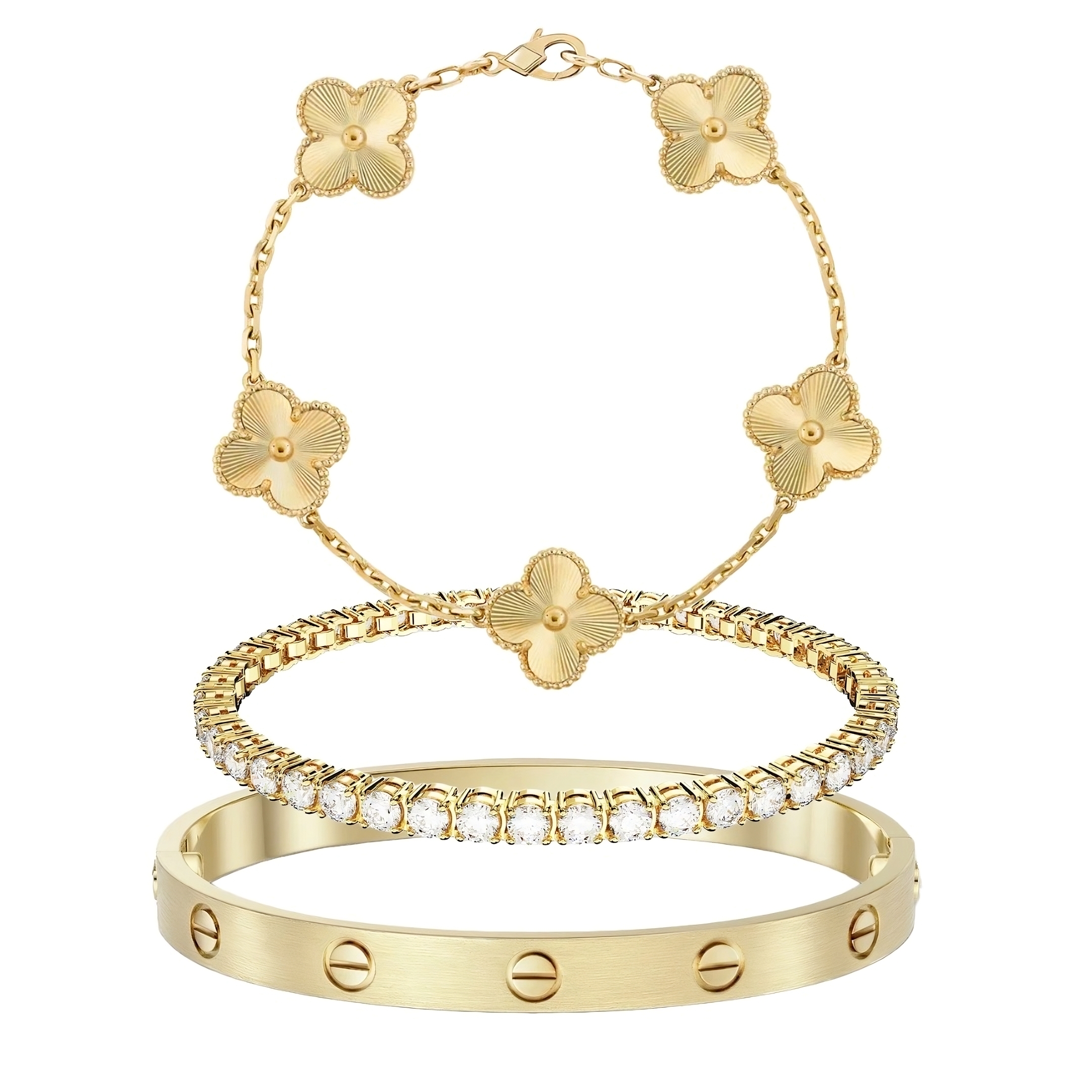 - Design: Setul include trei brățări elegante, fiecare având un design unic și rafinat.